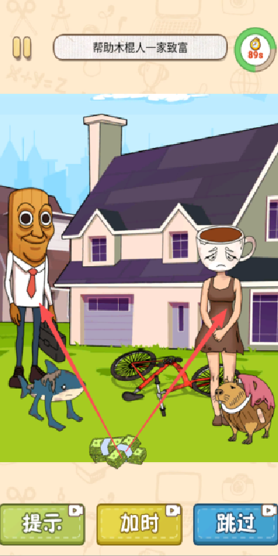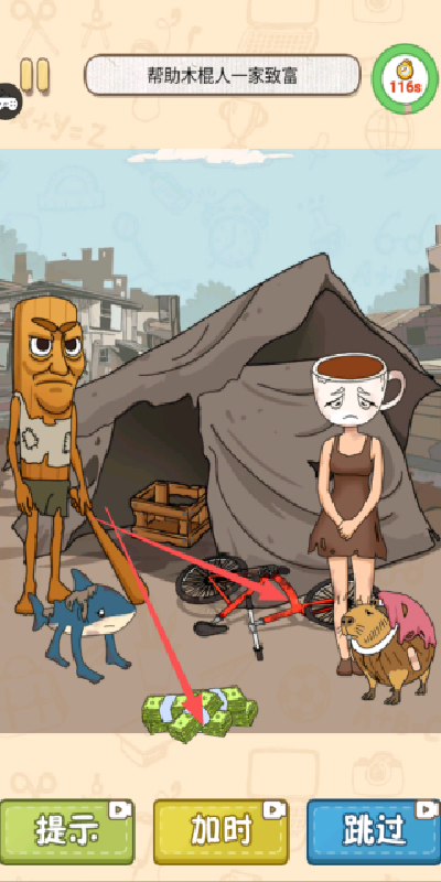 1、我们直接点击下方的钱捡起来,放在房子上就可以变豪宅了。