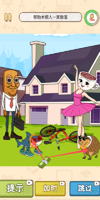 我能快速通关游戏是一款非常考验玩家思维能力的解谜闯关游戏,玩家在游戏中将会以木棍人的形象出现,帮助各种角色去解决他们的难题,每个关卡玩家只有在规定时间内帮助别人解决问题完成挑战,超过一秒都会导致游戏失败。