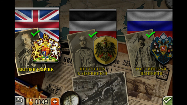 8个帝国的剧本战争,共40个战役。[大英帝国,德意志帝国,俄罗斯帝国,美利坚合众国,大日本帝国,大清帝国,法兰西帝国,奥匈帝国]