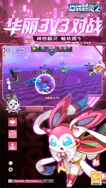 1、以口袋妖怪为主题,集宠物收集养成、策略对战、角色冒险为一体的手游。