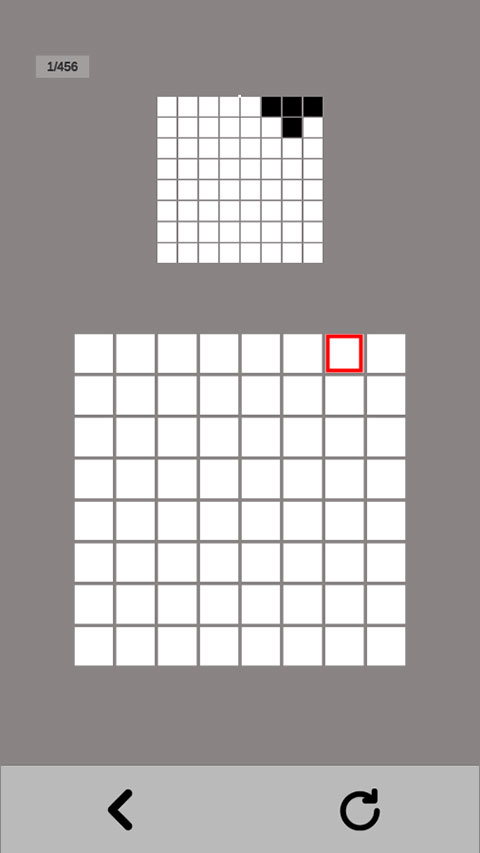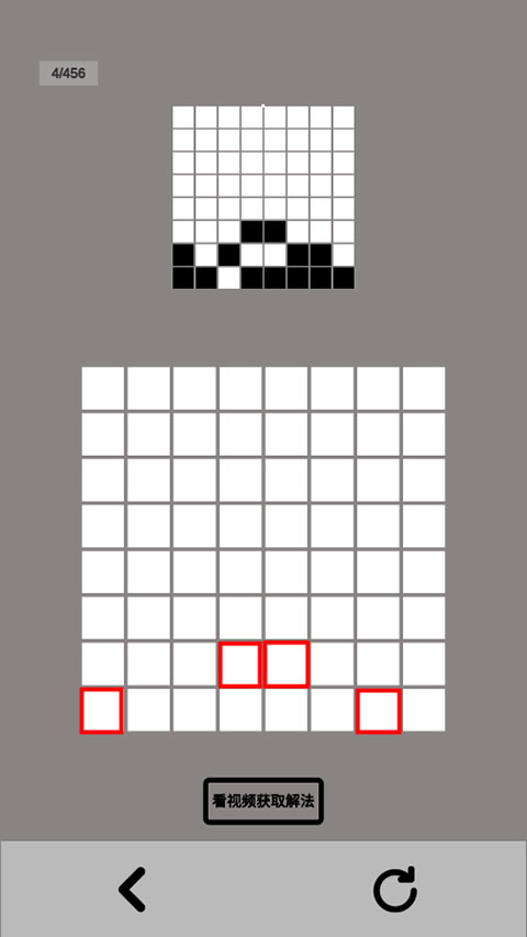 关卡3:黑白图案还在处于基础形状是比较好掌控的,多想象点击边缘方块会是怎么样的形状;