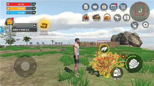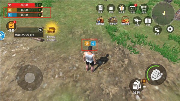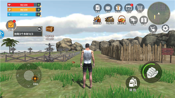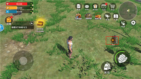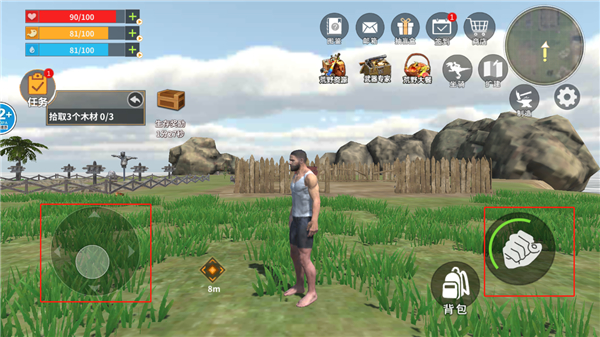 3、左边控制角色的方向,右边攻击,点击背包玩家可以查看自己所获得的物资;