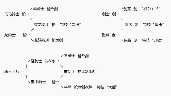 天空之鞭:LV10以上的飞马、飞龙兵种,转职为天马骑士或龙骑士,移动与攻防各有优势。