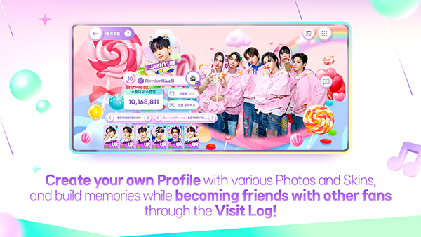 从艺术家出道至今,通过卡牌您可以查看各种形式的艺术家。通过收集和改进卡牌,您将解锁不同形态的艺术家,甚至可以通过Rhythm Hive专属自拍卡一窥他们的生活瞬间。