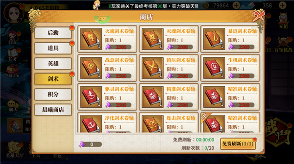剑术商店:免费刷,用碎片买连击、穿透等,新区优先升两级。