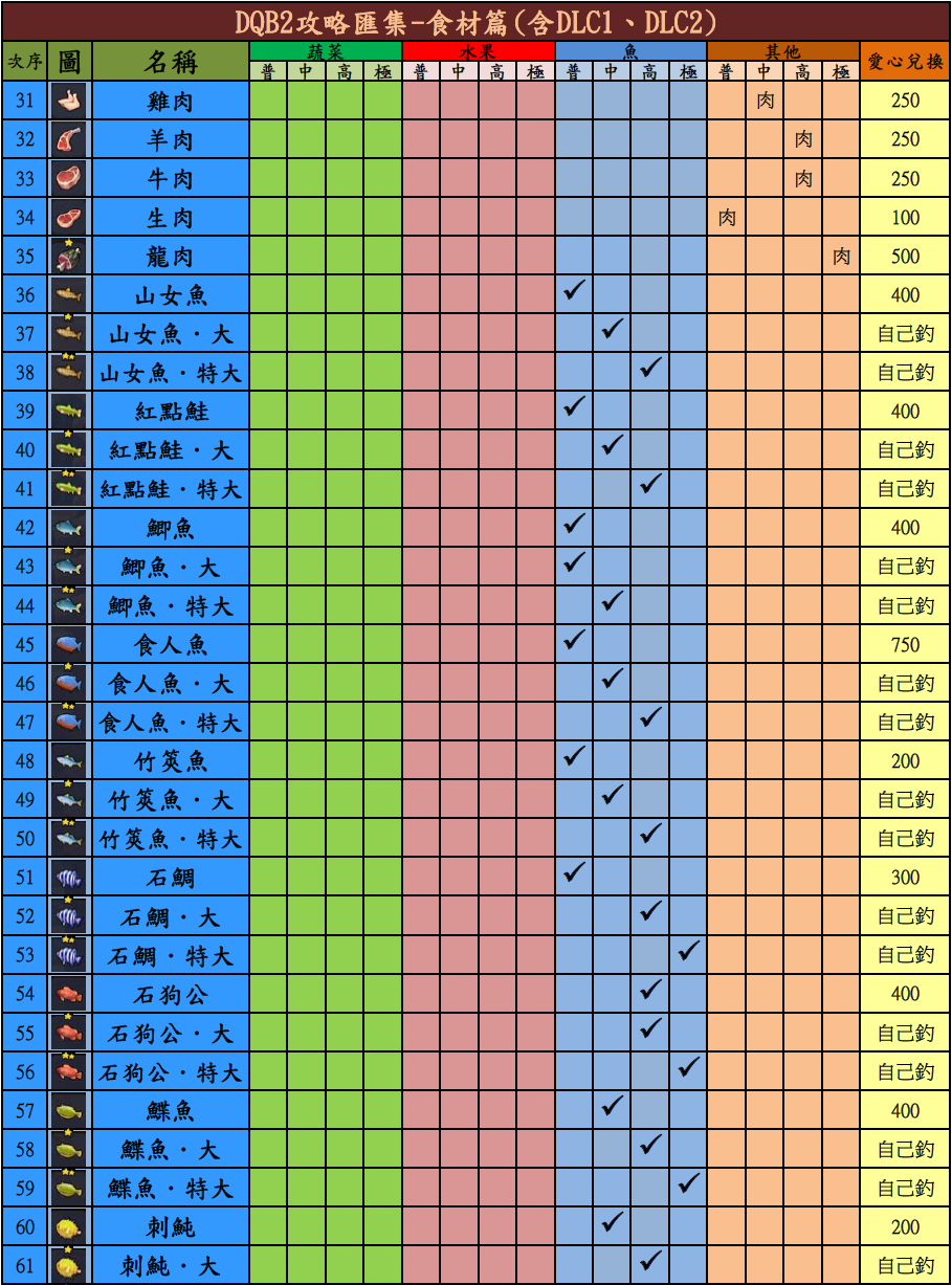 鱼类:普通12种 中级14种 高级18种 极品22种