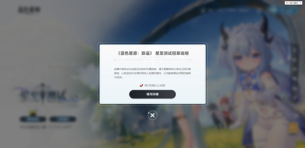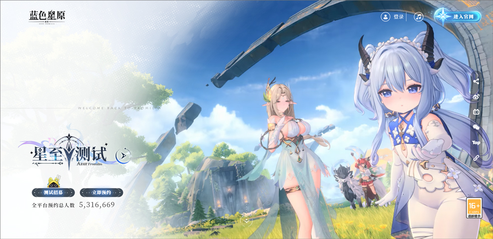 1、打开蓝色星原旅谣官网:https://azurpromilia.manjuu.com/,点击左下方“测试招募”。