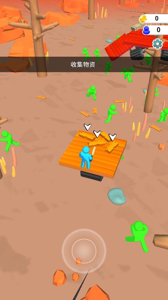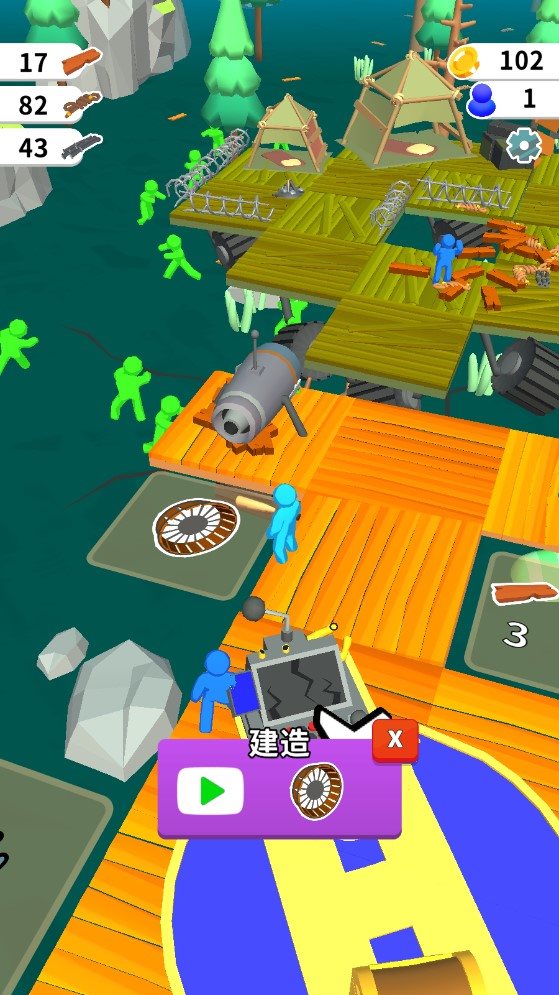 1、搭建安全的木筏,才能够阻挡各种丧尸的入侵,想办法获得更多的资源。