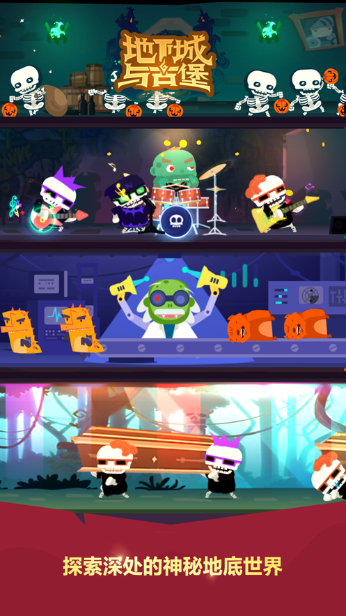 地下城与古堡游戏是一款策略性十足的休闲益智游戏。游戏的画风十分的诡异,在游戏中,玩家需要不停的去招募角色,每一种角色都有他特定的功能和作用,所以你需要尽可能多的获得更多的角色,这样你就可以搭配各种阵容去防御敌人的攻击。