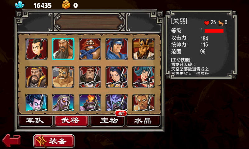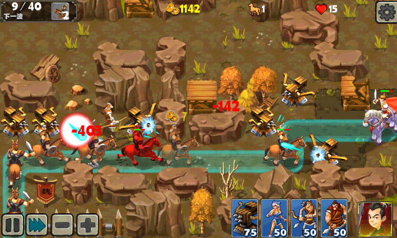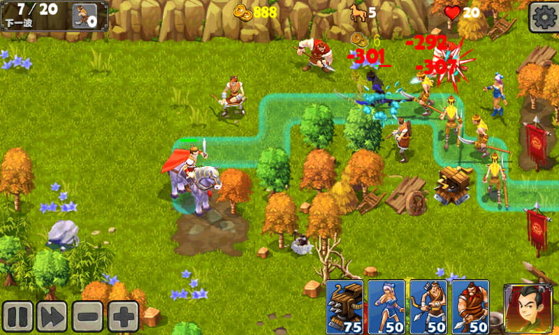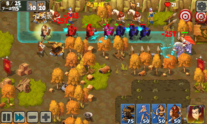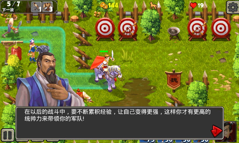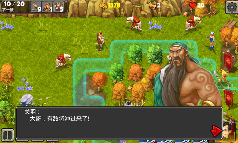 本游戏为一款新颖的塔防类游戏,以三国故事为游戏背景,把培养武将作为主线,在三国的历史战役中不断的提升武将技能,通过完成关卡发展新的关卡和故事情节,挑战更高级别的关卡。游戏最大特点在于颠覆的以往的塔防模式,全新的创造了玩家自主设置敌兵前进路线,以保卫和提升武将为核心的战斗模式。游戏在操作界面方面做的简单明了,而且画质和音乐清晰流畅。当前游戏共有1个教学关卡和21个普通关卡。