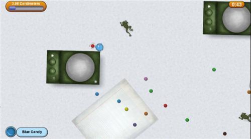 5、玩家需要注意的一点是,在游戏过程中,如果你被比你大的物体碰到的话,是会减小你的体积的。所以玩家在寻觅美食时,一定要注意避开这些庞然大物,以免让自己遭殃。