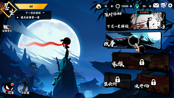 首先我们进入到忍者必须死3游戏当中,我们在游戏里面点击左上方的忍者升阶功能按钮