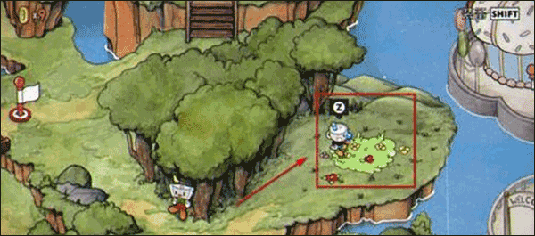 2、在这里,玩家可以看到蓝色的茶杯头在野餐,这时候需要玩家上前和其互动,触发剧情;