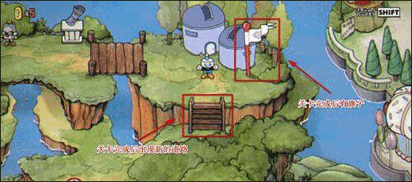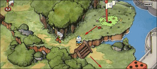 1、点击运行游戏后,在这里玩家可以先跨过桥梁到达白旗的位置;