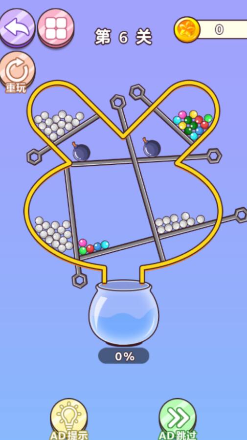 1.独特的益智游戏,玩家需要规划好小球球的路径,穿越各种障碍并最终滚进目标碗里;