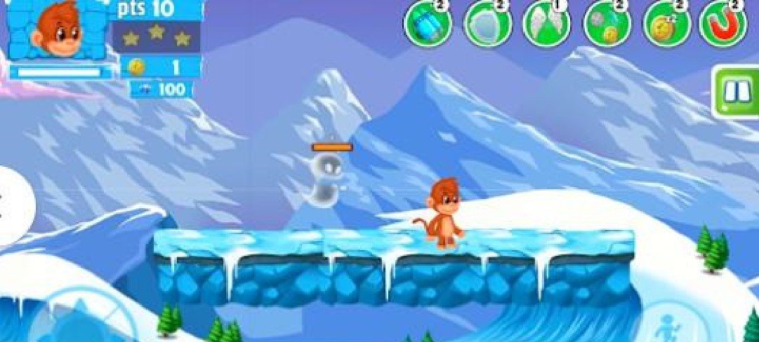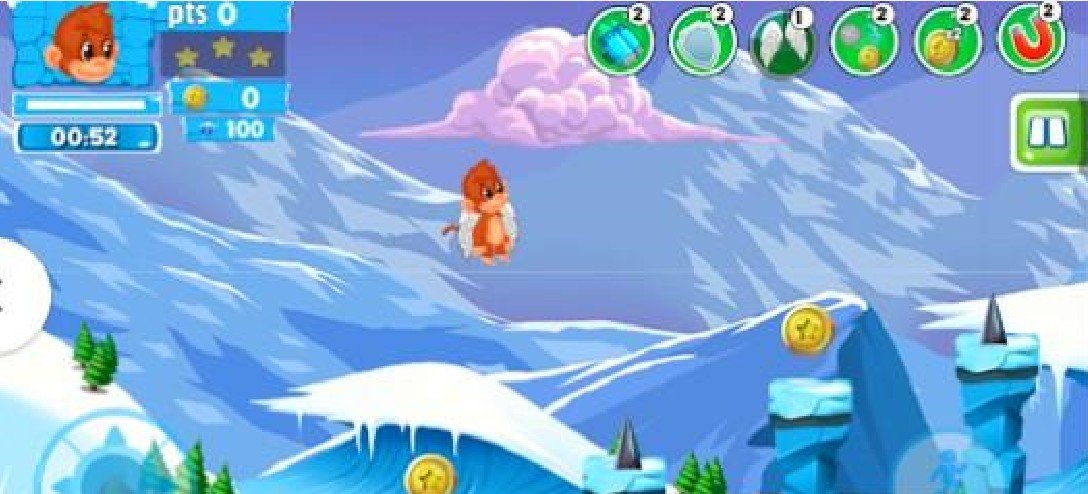 2、精美的画面风格体验,一只可爱的小猴子,在游戏之中自由的跳跃翻转,丰富多样的道具使用,