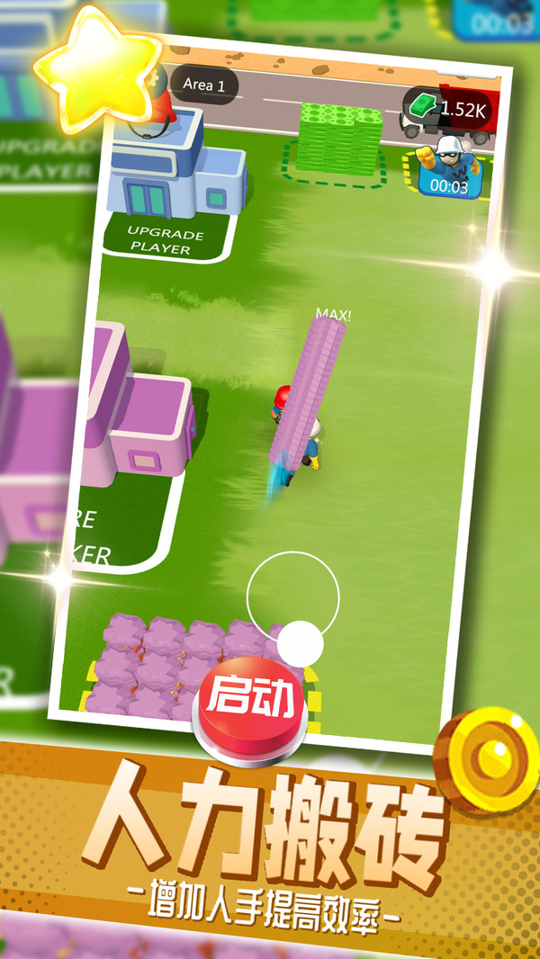 创新的搬砖主题,寓教于乐,引导玩家体验辛勤劳动的价值,享受成功喜悦。