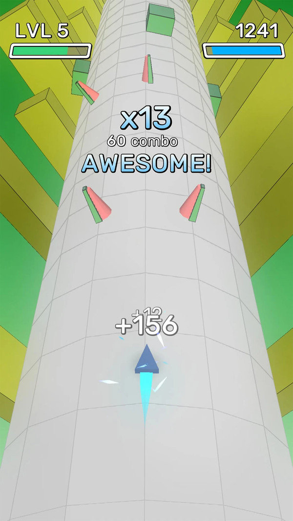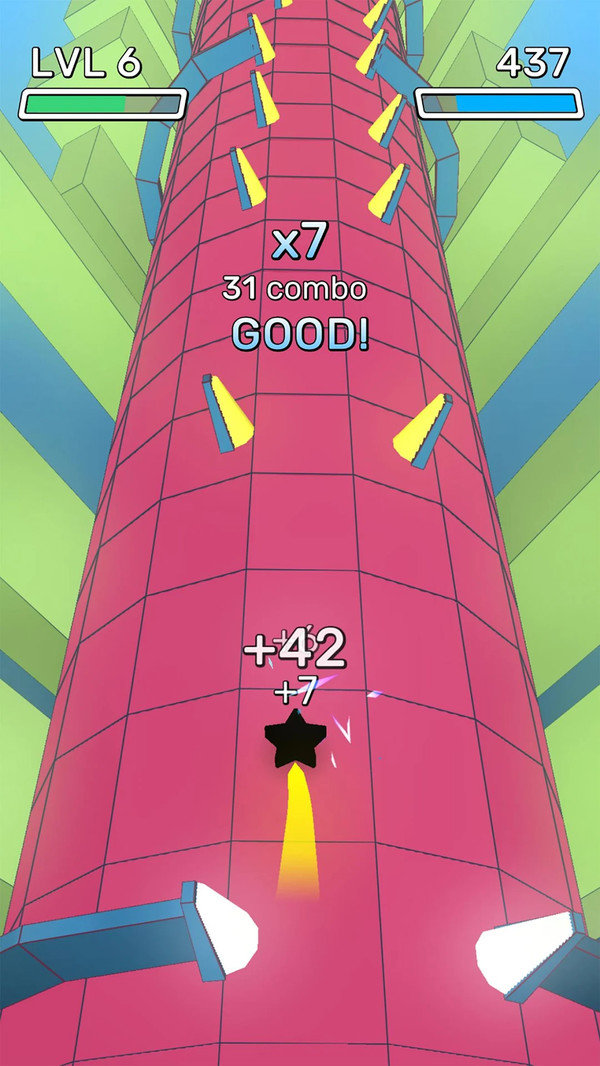几何前冲游戏是一款超好玩的冒险闯关游戏,这款游戏的画面非常简洁,玩家们将会在游戏中操控一个几何图形去冲刺闯关,途中你需要避开各种凸起的障碍物,游戏没有时间限制,速度会不断地提升,你冲刺得越远得分越高,非常考验你的反应速度。
