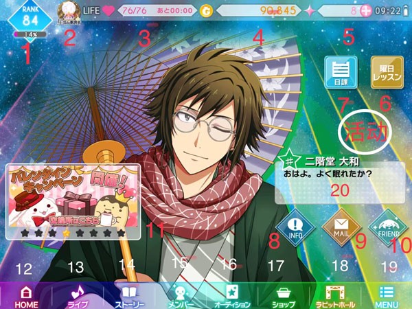 【14】剧情。(可观看游戏主线剧情,打歌解锁支线剧情,还有特别篇剧情。第三部剧情只有在解锁第二部剧情后才会显示。)