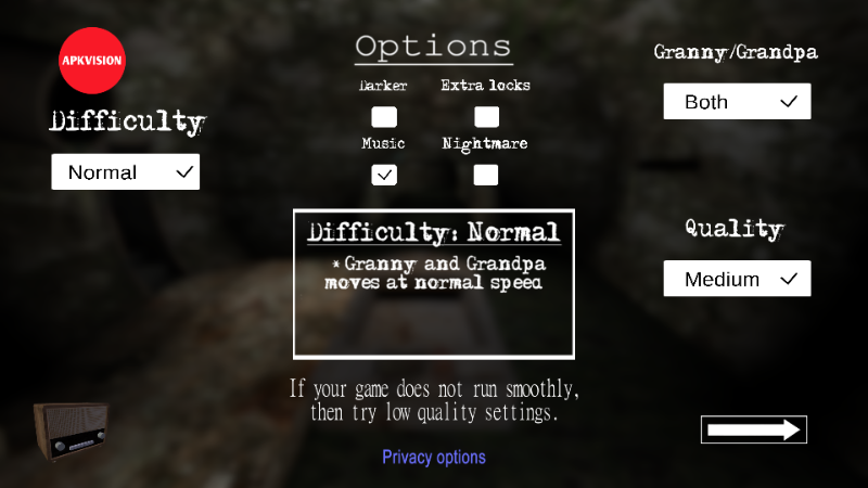 1、下载安装好恐怖老奶奶2辅助菜单版,运行游戏主界面点击“Play”。在大厅选择难度,首次上手的玩家强烈建议先选“练习”模式熟悉操作与节奏。