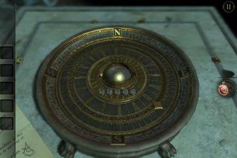 小球就装在这个巨大的指南盘。不过还不知道密码呢,其实就在一开始看的那封信上,只不过要用目镜看。始终在The