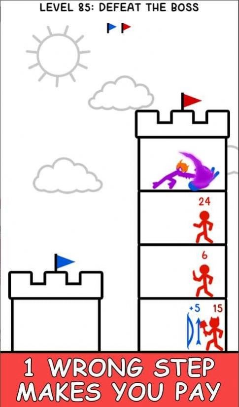 是男人就打上100层是一款融入了火柴人角色的地牢闯关小游戏,在这里有很多项的障碍闯关等着你去挑战,作为勇者的你要选择合适的武器来应对你的对手,这样的话才能够更快的将其击败,每一次挑战的时候你都会遇到一些怪物,他们实力也是很强的你一定要灵活作战,开启你智慧的大脑,想出最佳的办法将其击倒顺利闯关。