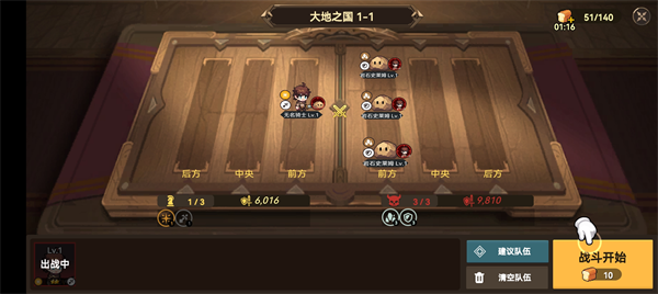 3、在战斗开始前需要布局自己的作战队伍,你可以自定义,也可以采用游戏建议的队伍,选择好后点击右下角的战斗开始即可。