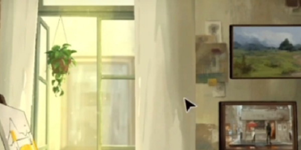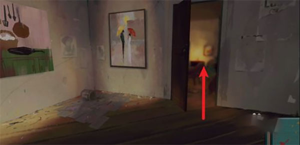 2、在房间内的墙面上看到画板,用颜料把伞涂上黄色和红色,并获得信件线索;