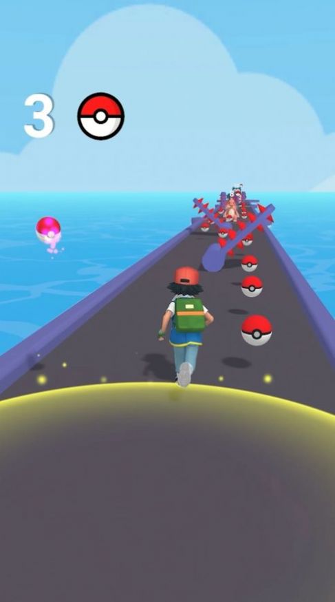 2、跑道上不仅有精灵球,还有非常多的宠物精灵,需要你更好的收集道具。