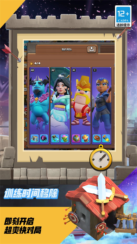 4、赢得战斗获得大量不同的宝箱,收集新的卡牌并且升级它们;让你的阵营中拥有大量不可思议的士兵和战争机器;