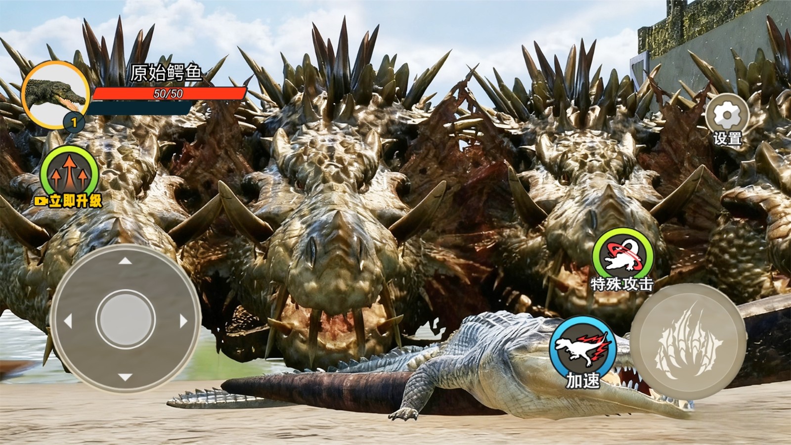 1.核心动作为狩猎与进化,通过捕食恐龙、鱼类及其他鳄鱼获取经验值与资源,不断提升角色等级与属性。