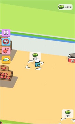 1、首先我们进入我的迷你超市游戏,第一步就是先解锁一些货架,开始售卖产品;