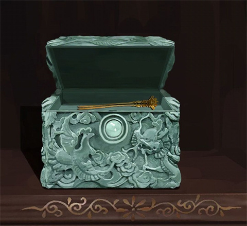 将玉净瓶和柳枝(左厢房得到)放在菩萨的手上,打开右边的门