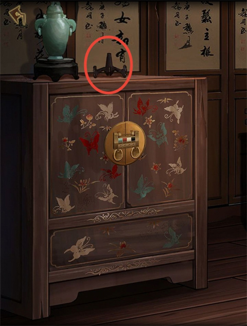 点击坐垫,用上方获得的线索打开机关获得扣环和纸页