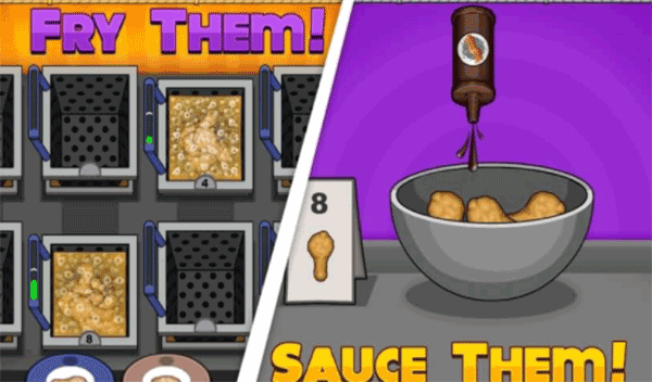 游戏会有难易程度区分,在最开始的时候,我们制作的鸡翅食材种类少,顾客相对简单的需求,客流量也非常小,所以前面的鸡翅制作是简单的,每一个鸡翅制成,都是玩家自己一步一步利用鼠标完成的。但是到后期鸡翅的食材配料种类增加,客人的需求开始有了变化,甚至还会出现用餐的高峰期。