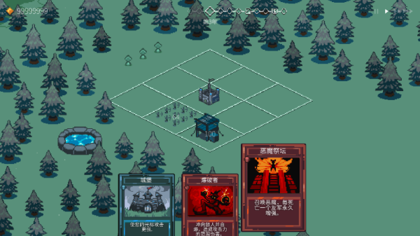 3、在这里我们能够看到一个采用了浓浓像素风格的游戏画面,我们在这里可以使用各种卡牌开始游戏。