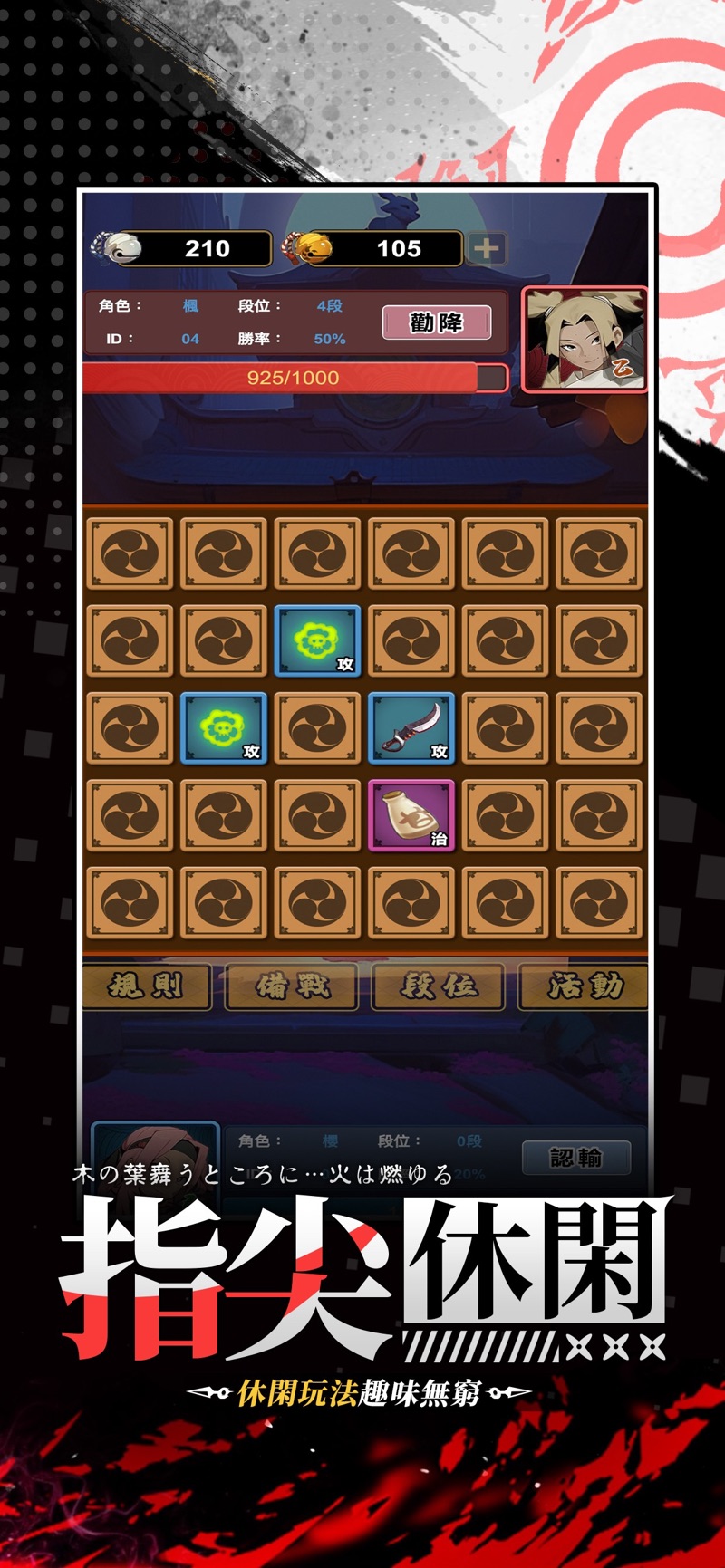 3、等级系统也非常的有特色,分为忍者级、试炼级、雇佣级、传奇级、神话级等,越往上级别越高越难。