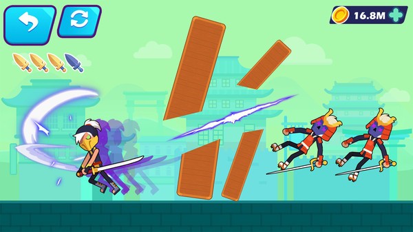 创新型爽游来袭。你将成为一名忍者,你的目的只有一个,那便是打倒眼前的所有敌人。我们原则是能用一刀,绝不会用第二刀。看这里的建模非常粗糙,玩家可以控制你的战士,在这里感受一刀999是什么感觉,这个游戏游如其名,不管是什么敌人,统统一刀解决带走,能够活到最后的人才是整场比赛的胜利者,能够解锁各种各样的称号。