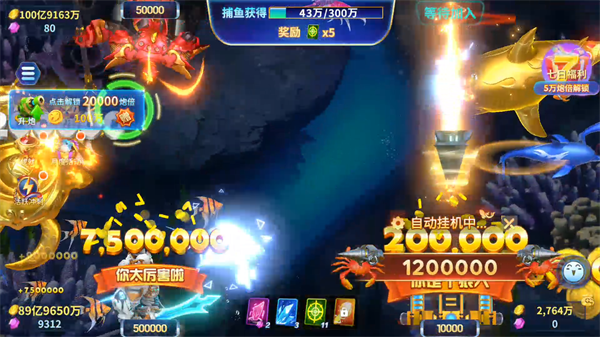 更高炮倍,更大奖励,智能选鱼,解放双手,直接起飞!