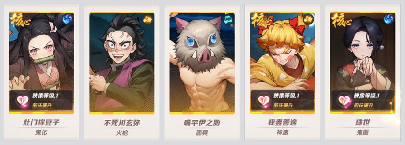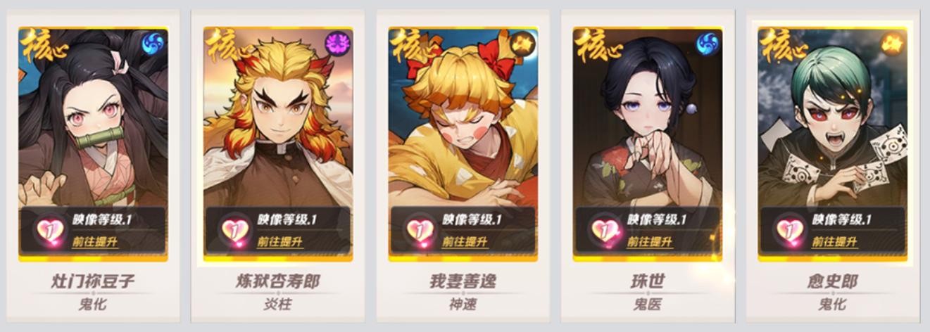 1、卡牌放置:玩家可以收集并培养数十位原作角色,如掌握水之呼吸的炭治郎、使用雷之呼吸的善逸等