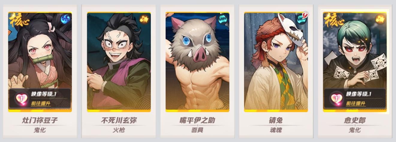 灶门妳豆子·鬼化+不死川玄弥·火枪+嘴平伊之助·面具+我妻子善意·神速+珠世·鬼医