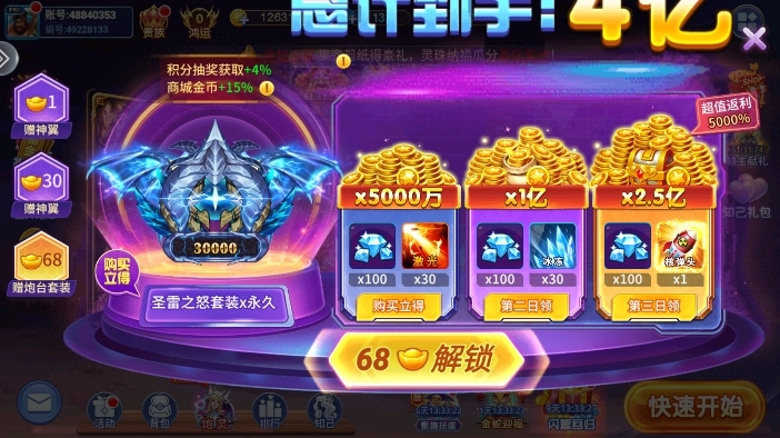 限时活动奖励:游戏会定期推出各种限时活动,如节日庆典、周末狂欢等,新手玩家可以参与其中,获得额外的奖励和福利。玩家需要关注游戏内的活动公告,按照活动要求完成任务或参与活动,即可获得相应的奖励。