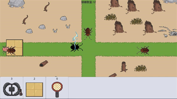 4、使用下方的道具栏的道具,拖到游戏内,消灭蟑螂。