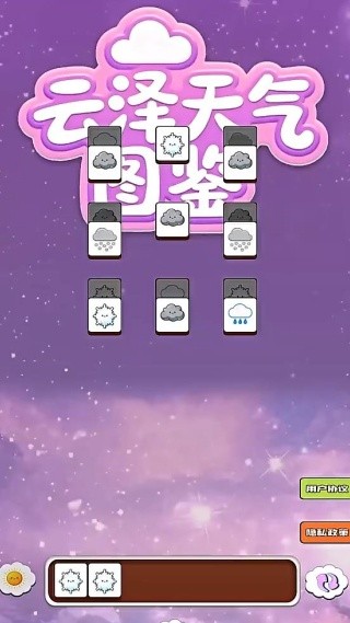 云泽天气图鉴是一款休闲益智类的游戏,通过点击就可以快速进行消除的操作,游戏中具有多种不同样式的图标,你需要做的就是把相同的内容进行消除,获取到更高的积分。游戏中的关卡内容非常的丰富,随着游戏的进行其中的难度也会进行提升,不同关卡对应的机制和特效各不相同,你可以运用策略更好的进行挑战。还有多种不同的道具可以使用,让你可以更好的进行体验,轻松突破其中的关卡。