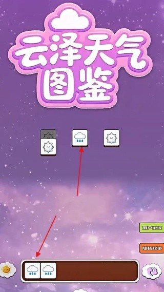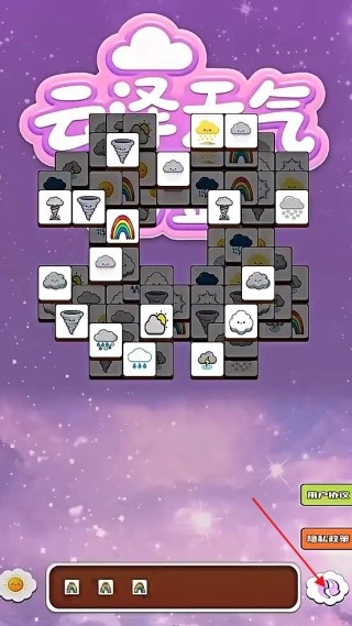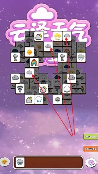 2、点击上方的下雨图标,跟下方两个下雨的图标匹配,三个相同图标才能进行消除。