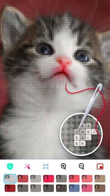 4、最简单的游戏玩法:我们的游戏模仿了真正的十字绣,只需选择彩色线并点击在您的设备上放置针迹即可。
