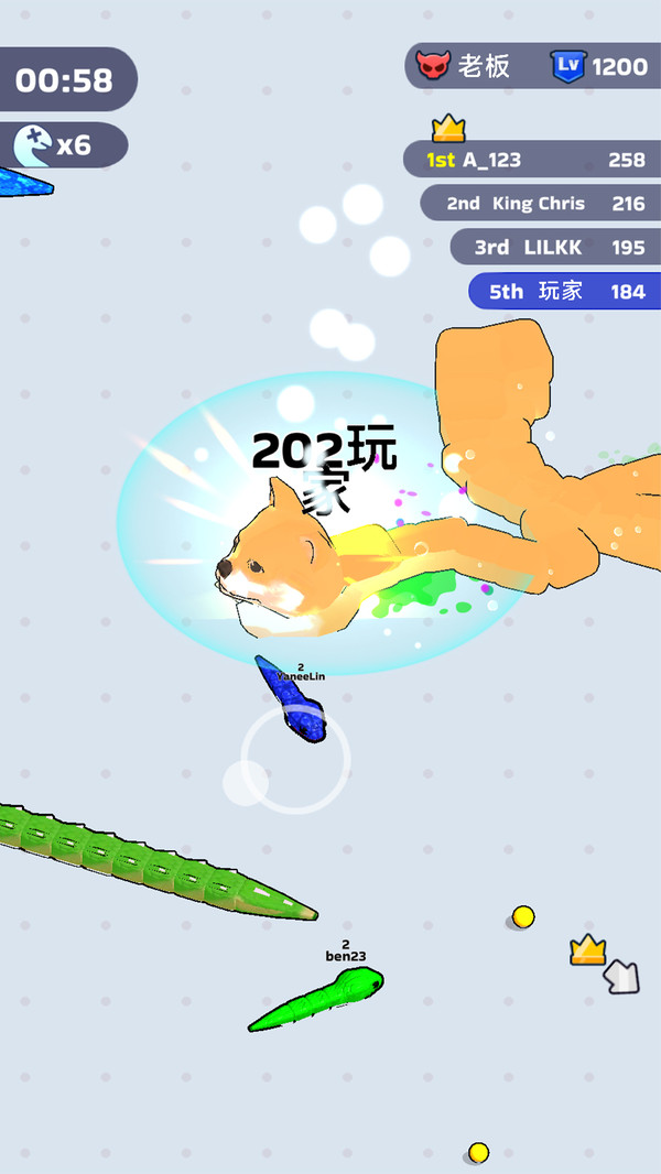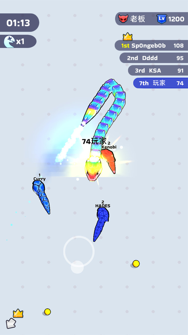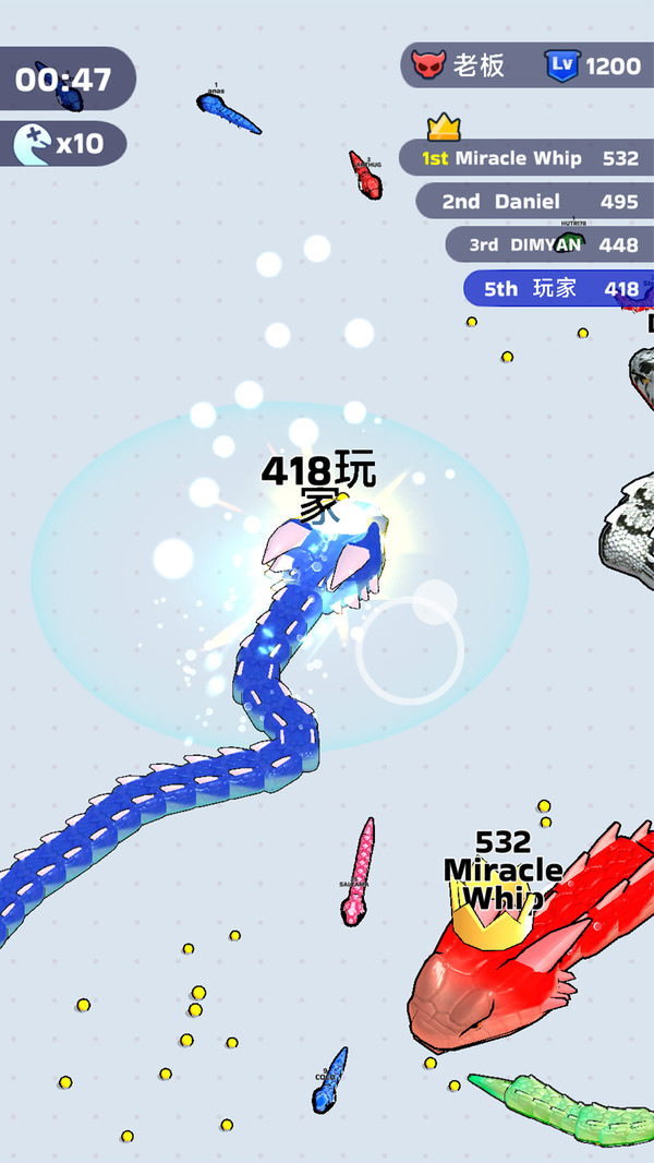 2、注意避开其他蛇的头部,一旦相撞就会失败,但可引诱对手撞上你的身体。