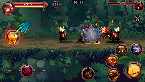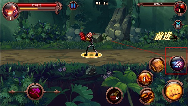 4、右下角最大的按键为游戏普攻键,没有冷却时间;