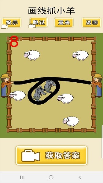牧场中混入了一群狼,小羊们害怕极了, 快点来帮助牧场主保护小羊吧, 利用你的智慧将狼群和小羊分割开吧。是一个无需网络的单机游戏,在游戏中大家可以看到很多关卡,大家需要做的就是保护这些关卡中的小羊,这些小羊和狼群在一起,想办法使用画线的方式来守护这些小羊的安全吧。