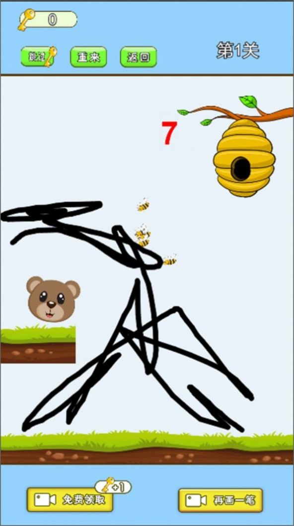 小熊的蜂蜜游戏是一款经典的画线挑战休闲闯关手游。玩家需要通过划线的方式来将蜜蜂和小熊隔开,不能让这些蜜蜂来伤害到小熊。每个关卡都设置了各种不同的场景,玩家需要仔细观察每个场景,来画出合理的线条,这样就可以更好的保护小熊。